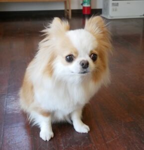 でんぶ・・・チワポメ ロングコートチワワ&ポメラニアンMIXの ノアくん。 ・・・さくら開花。もうすぐ。 ・・・ピンクの でんぶ。さくら色。 ・・・甘くて、よくわからない味だけど。 だって、ピンク色の 魚のすり身さ。