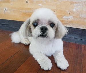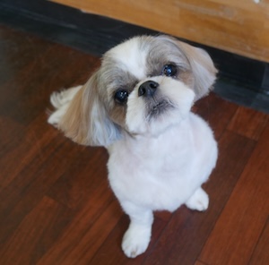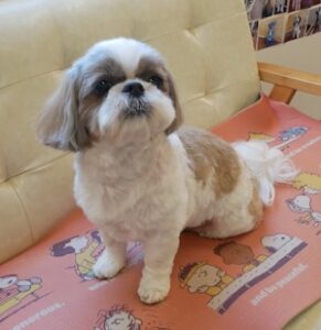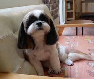 大学芋・・・シーズー シーズーの ティアラちゃん ショコラちゃん。 ・・・秋は、さつまいも。 ・・・ほくほく 大学芋。 ・・・でも、手に 服に ついちゃって。 ・・・あ、髪にも。 悲惨にならない食べ方、ないものか。