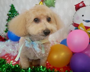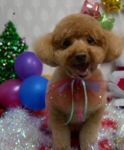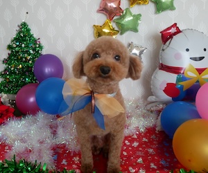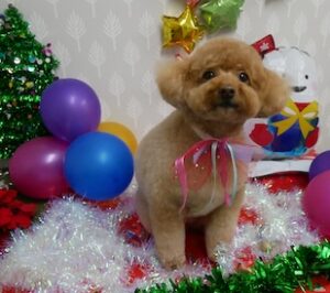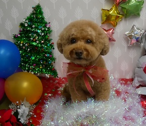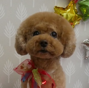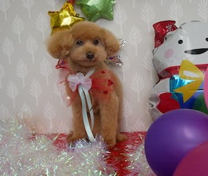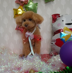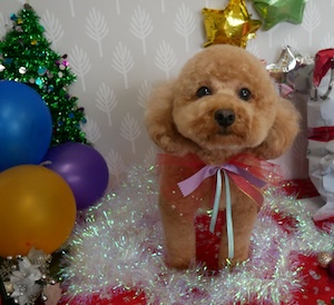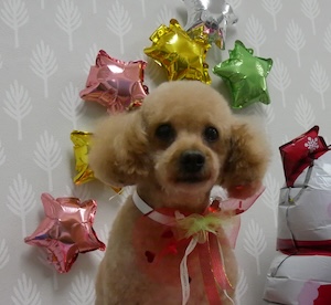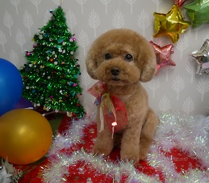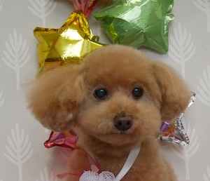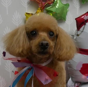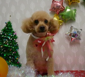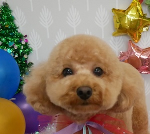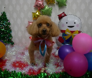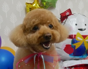 小さめ・・・トイプードル トイプードルの 小梅ちゃん。 ・・・クリスマスケーキ 予約しないと。 ・・・今年は、小さめサイズで。 と決めたはずなのに。 ・・・予約に行くと、ついつい。 1、2サイズ 大きめ頼んじゃって。