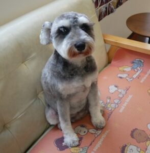 チーズケーキ・・・シュナウザー ミニチュアシュナウザーの こはくくん。 ・・・クリスマスケーキ予約しないとな。 ・・・チーズケーキ 好きだけど。 ・・・見た目が、さみしいんだよな。 基本 デコレーションないもの多いよね。