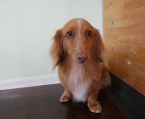 ロングヘアードミニチュアダックスフンドの レオちゃん。