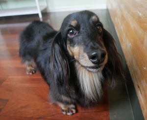 ロングヘアードミニチュアダックスフンドの クロロくん。