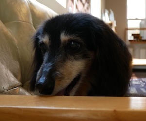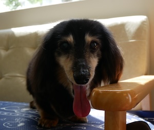風の道・・・ダックス ロングヘアードミニチュアダックスフンドの ラッシーくん。 ・・・暑さ対策必要な今日。 ・・・家の中に 風の道つくって。 ・・・で、どこの窓を開けると、風 通るんだ? 道選び が、一番むずかしく。
