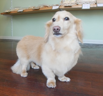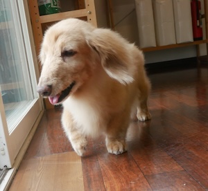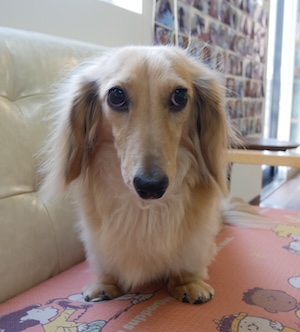 焼き芋・・・ダックス ロングヘアードミニチュアダックスフンドの ダイスケくん。 ・・・ふと、秋を感じるとき。 ・・・今や年中 スーパーで 焼き芋 売っているけど。 ・・・やっぱり秋。は、ついつい。 焼き芋専門店の前 通ったら ひとしおに。