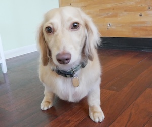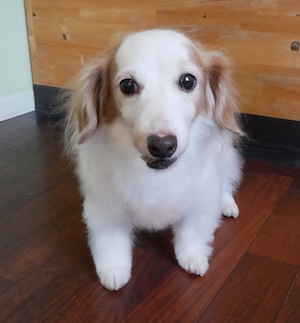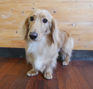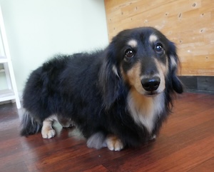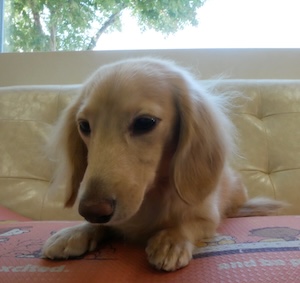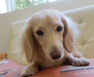 プリン・・・ダックス ロングヘアードミニチュアダックスフンドの チョコくん レートくん。 ・・・今日は、生クリームの日。 ・・・ただの プリンに。 ・・・生クリームを のせると。 ・・・プリン・ア・ラ・モードに! チョコレートも のっけてね。