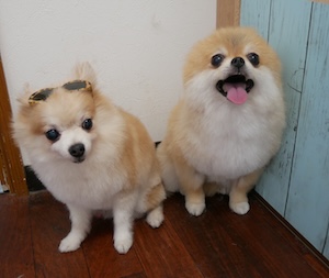 制服・・・ポメックス、ポメラニアン ポメラニアン%ロングヘアードミニチュアダックスフンドMIXの むぎちゃん。 ポメラニアンの すももちゃん。 ・・・もうすぐ2学期が、はじまる。 ・・・制服生活に戻るのかー。 ・・・あれ。 ・・・ちょっと きつい? 楽しくて、おいしい 夏休みだったのね。。