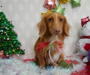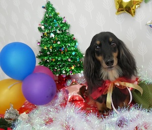 チョコ・・・ダックス ロングヘアードミニチュアダックスフンドの チョコくん、レートくん。 ・・・クリスマスケーキ 予約しないと。 ・・・チョコレートケーキって。 ・・・高級なら、高級なほど。 ・・・デコレーションが、シンプルなんだよね。 ケーキピック一個だけだったり。
