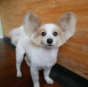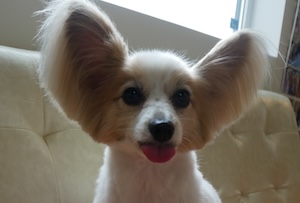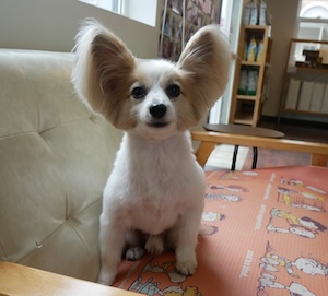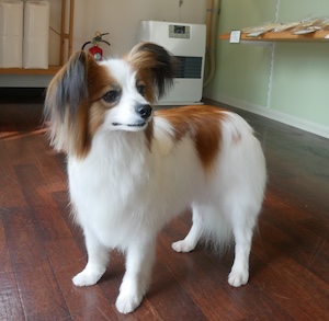 サーキュレーター・・・パピヨン パピヨンの ほくとくん。 ・・・雨降って、蒸し暑い日。 ・・・サーキュレーターで、風の通り道をつくろう。 ・・・風の 通り道って、どう見るんだ? 風に 色つけたいもので。
