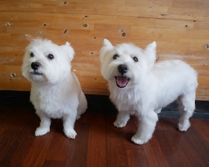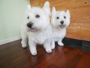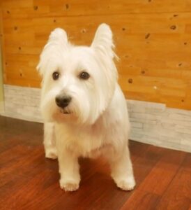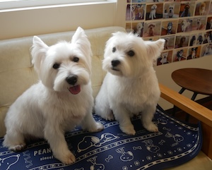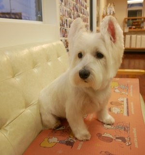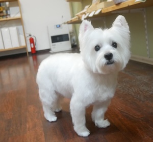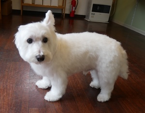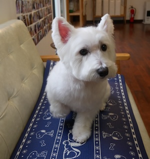 クリーニング・・・ウエスティ ウエストハイランドホワイトテリアの きららちゃん うららちゃん。 ・・・冬の準備はじめないと。 ・・・冬のコートは、どこだ? どこだっけ。。 ・・・あ、クリーニング屋だ。 春に出した、コートが。