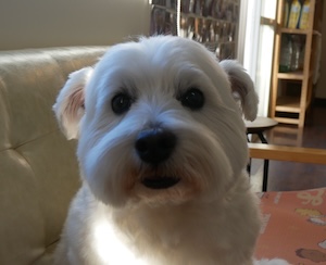 はじめて・・・ウエスティ ウエストハイランドホワイトテリアの さらちゃん。 ・・・今日が、名字 の日。 ・・・はじめて この名字に、会いました。 ・・・と言われる、珍しい名前だけどさ。 またか。と思っているのかな。