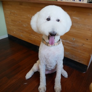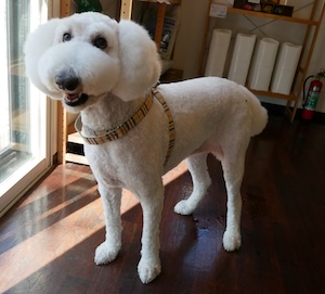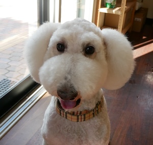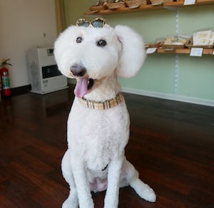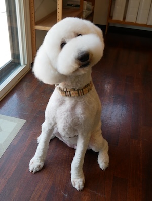 おみやげ・・・スタンプ スタンダードプードルの バニラちゃん。 ・・・連休明け。仕事だー。 ・・・机の上に、いろんなお土産が。 ・・・みんなどこかに、行ったのね。 どこもいかなくても、適当にお土産用意して。