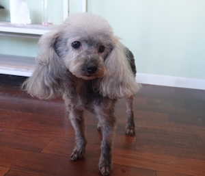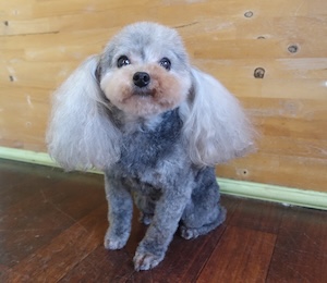 駐車場・・・チワプー ロングコートチワワ&トイプードルMIXの ハクくん。 ・・・いきなり あたたかく。雪どけ すごい。 ・・・スーパーの駐車場って。 ・・・なんであんなに、水たまり だらけなんだろう。 靴を濡らさずは、なかなか難しく。