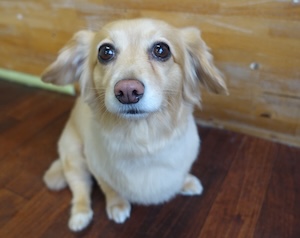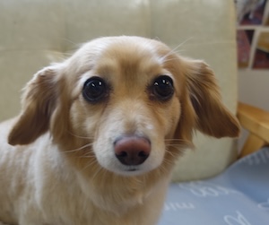 夜中の目・・・チワックス ロングコートチワワ&ロングヘアードミニチュアダックスフンドMIXの ディオルくん。 ・・・明日は、ひなまつり♪ ・・・うちの 雛人形は、7段飾りさ! ・・・でも。。夜中、トイレにいけない。。 全員の 光る目で、見られているような。。