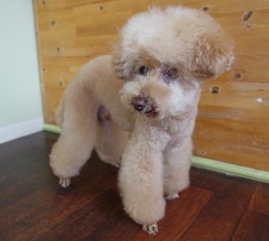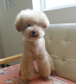 一枚ずつ・・・トイプードル トイプードルの りんくん。 ・・・今日は、バウムクーヘンの日。 ・・・大きな輪っかの バウムクーヘンって。 ・・・一枚ずつ、めくって 食べちゃう。 なんか行儀悪いような気がして、わくわく♪