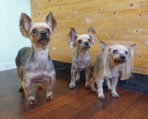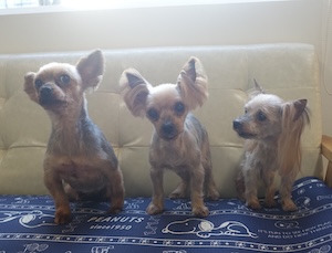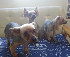 制服・・・ヨーキー ヨークシャテリアの 桃子ちゃん さくらちゃん 小梅ちゃん。 ・・・連休最終日。 ・・・明日から学校だー。 ・・・制服どこだ? リボンタイどこだ? 教科書どこだ? 学校モードに戻るの 大変。