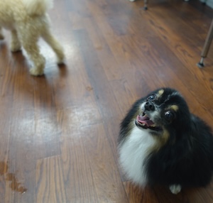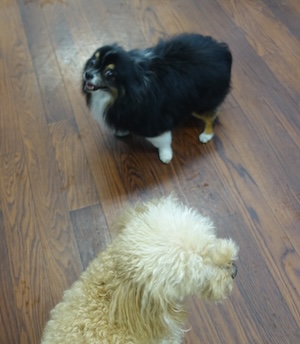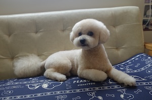 おみやげ・・・ボロニーズプードル ボロニーズ&トイプードルMIXの 晴吉くん。 ・・・連休明け。今日から仕事。 ・・・机に、休憩室に。 ・・・おみやげ いっぱいあるんだけど。。 どこもいかないと、だめ?と思ってしまい。