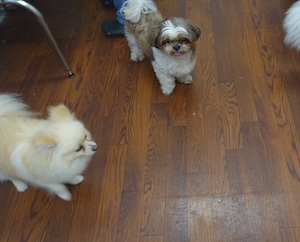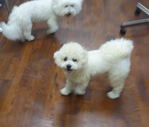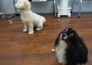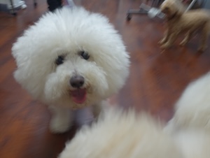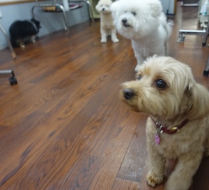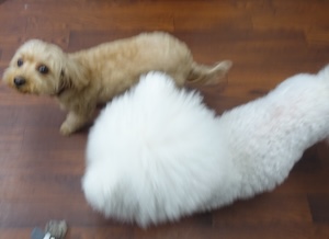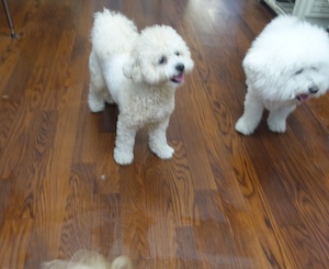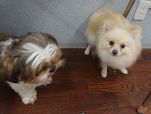 ハンバーグ・・・ビション、プードル ビションフリーゼの ナツくん。 トイプードルの ルークくん。 ・・・こどもの日、楽しもう! ・・・好きなもの 食べよう。 ・・ハンバーグに、卵焼きに、チキンナゲットに。 ・・・ん? 前にも食べたような。。 クリスマスかな。