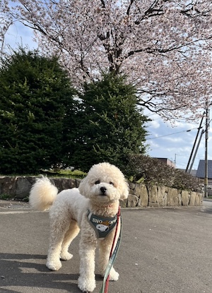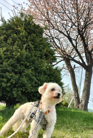 近所の桜・・・トイプードル トイプードルの コロくん。 ・・・今日はみどりの日。自然を楽しもう。 ・・・桜の名所もいいけど。 ・・・近所の公園の桜。ずっと見ているのも楽しくて。 自分だけの桜。って感じで。
