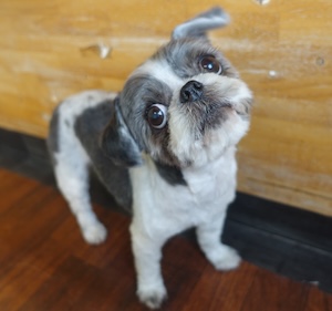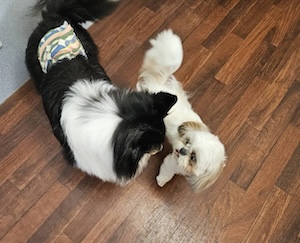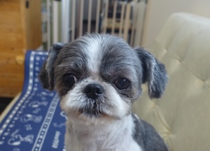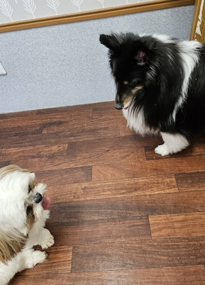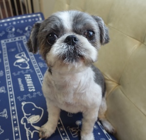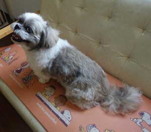 シンバル・・・狆シーズー 狆&シーズーMIXの しずくちゃん。 ・・・今日は、楽器の日。 ・・・シンバル。叩こう。 ・・・長ーーーい曲の最後に、はじめての出番が! 暇だけど。その出番をしくじったら、全部がしくじりになるわけで。