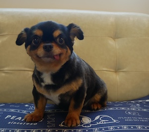 検査着・・・チワワ ロングコートチワワの 誾千代ちゃん。 ・・・今日は、人間ドックの日。健康診断かぁ。 ・・・下着つけないで、検査着に 着替えて。 ・・・なんか、恥ずかしいような。 ちょっと心配な待ち時間。