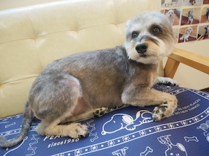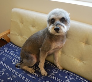 キットカット・・・シュナプー ミニチュアシュナウザー&トイプードルMIXの トムくん。 ・・・猛暑日 になるかも? って暑さ。 ・・・キットカットを、冷やすと、サクッとおいしくて。 ・・・夏でも、チョコ食べられるぞ。 溶ける前に、食べちゃお。