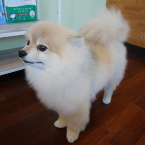 前菜スープ・・・ポメラニアン ポメラニアンの 福くん。 ・・・猛暑日 になるかも? って暑さ。 ・・・ちょっとお高めのレストランは、今時期、スープは冷製が出てくるけど。 ・・・ちょっとお高めレストランは。冷房がんがん なんだよね。 あたたかいスープ 欲するくらいで。