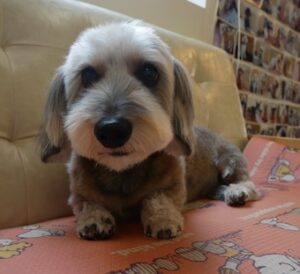 アイス・・・ダックス ワイヤーヘアードミニチュアダックスフンドの 宇宙くん。 ・・・猛暑日続きで、体が限界。 ・・・アイス食べたいけど。 ・・・食べるより、溶ける方が早くて、買えず。 手に服に ベタベタ が、耐えられず。