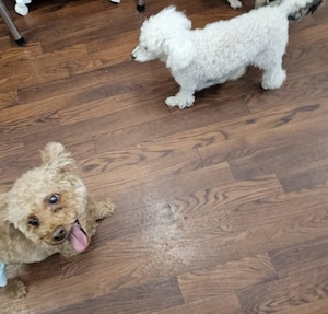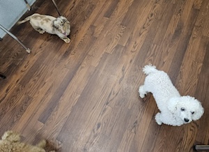 へび花火・・・トイプードル トイプードルの ここちゃん。 ・・・今日は、花火の日。家でやるなら。 ・・・へび花火。 ・・・大きな錠剤のようなものに、火をつけると。黒い物体が。のびーーーて。 どくどくしい 黒い煙とともに。