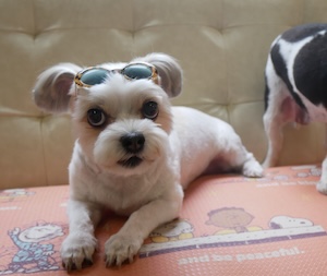 海水浴・・・マルチーズ マルチーズの ぷぷちゃん。 ・・・今日は、焼き肉の日。ジンギスカンだね! ・・・さてと、海水浴の 準備しよう。 ・・・だって、海水浴=ジンギスカンでしょ。 海に入らない 海水浴 定番さ。