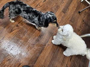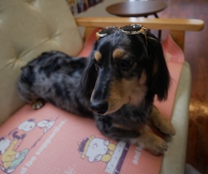 修学旅行・・・ダックス ロングヘアードミニチュアダックスフンドの トライくん。 ・・・今日は、富士山の日。 でも北海道人にとって。 ・・・富士山を はじめてみるのが、 ・・・新幹線 ってことが。 新幹線から見えたのが、たぶん富士山。