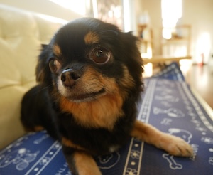 ハロウィン・・・チワポメ ロングコートチワワ&ポメラニアンMIXの ウォルくん。 ・・・来週は、一気に気温急降下。 ・・・街が、どんどん オレンジ色に。 ・・・紅葉? いえ、ハロウィン色に。 ジャック・オ・ランタン色。