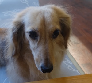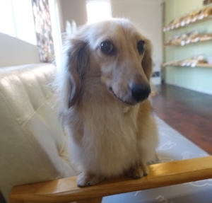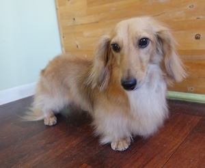 ロングヘアードミニチュアダックスフンドの レオちゃん。