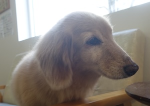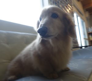 ロングヘアードミニチュアダックスフンドの ラッシーくん。