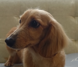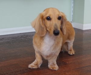 ロングヘアードミニチュアダックスフンドの ペイくん。