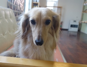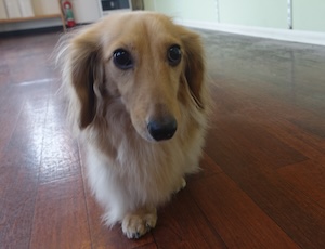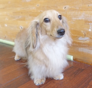 ロングヘアードミニチュアダックスフンドの レオちゃん。