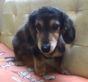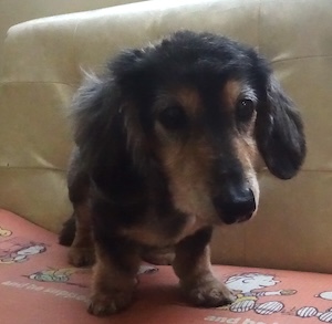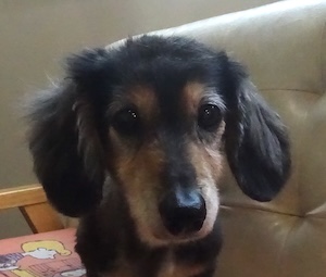 ロングヘアードミニチュアダックスフンドの ラブちゃん。