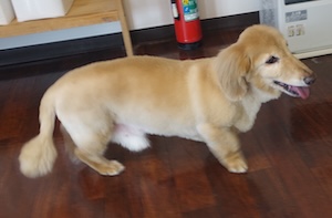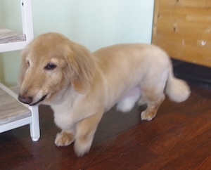 ロングヘアードミニチュアダックスフンドの ラッシーくん。