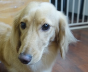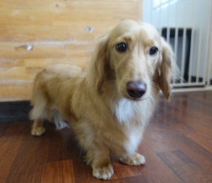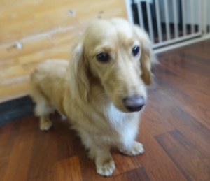 ロングヘアードミニチュアダックスフンドの コトくん。