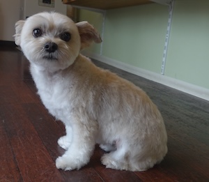 ロングコートチワワ&マルチーズMIXの ソルテちゃん。