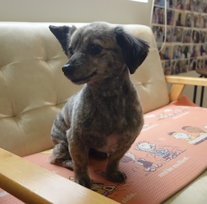 ロングコートチワワ&ロングヘアードミニチュアダックスフンドMIXの カクニちゃん。