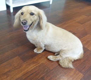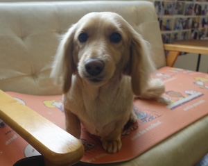 ロングヘアードミニチュアダックスフンドの クレアちゃん。