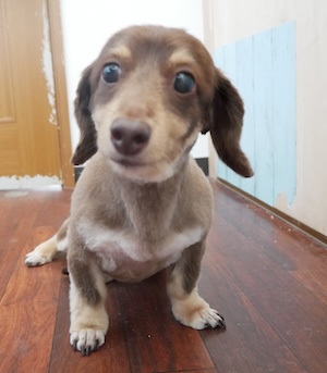 ロングヘアードミニチュアダックスフンドの サクラちゃん。
