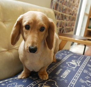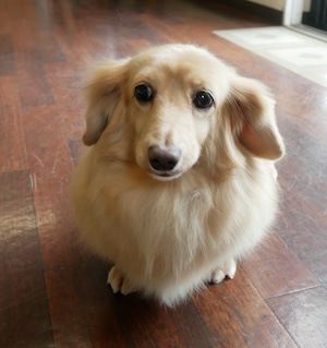 ロングヘアードミニチュアダックスフンドの ひめちゃん こうめちゃん。
