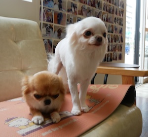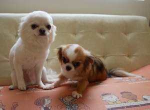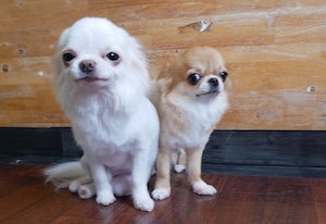 ロングコートチワワの ちこちゃん・ちくわくん・こたろうくん・おこわくん。