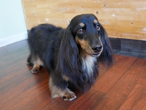 ロングヘアードミニチュアダックスフンドの チョコくん レートくん。