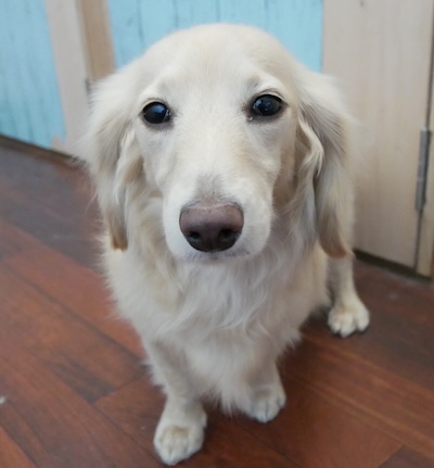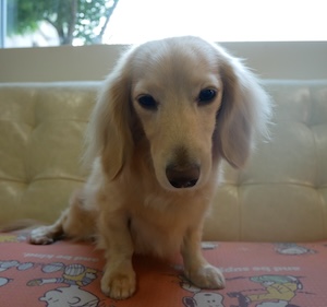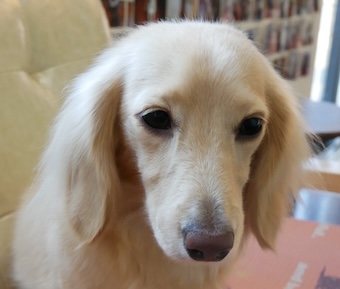 ロングヘアードミニチュアダックスフンドの ゆきちゃん。