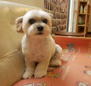 ロングコートチワワ&マルチーズMIXの ソルテちゃん。