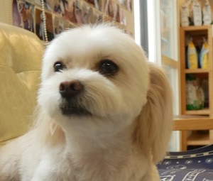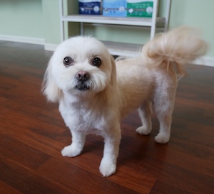 ロングコートチワワ&マルチーズMIXの オモチくん。