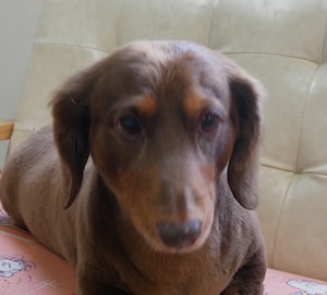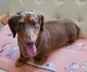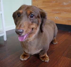ロングヘアードミニチュアダックスフンドの カカオくん。