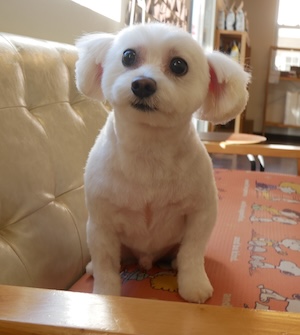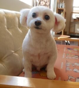 ロングコートチワワ&マルチーズMIXの てんちゃん。